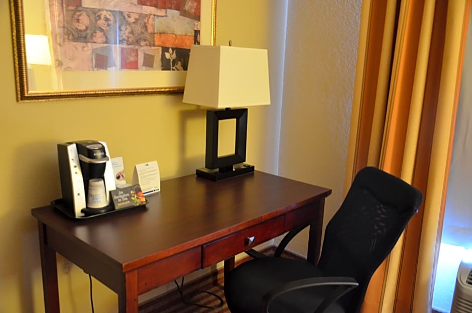 This wheel chair accessible room includes satellite TV, a microwave and a small refrigerator.