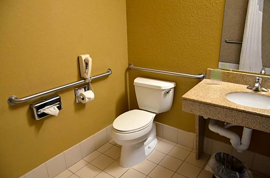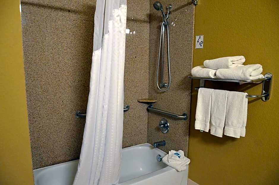 This wheel chair accessible room includes satellite TV, a microwave and a small refrigerator.
