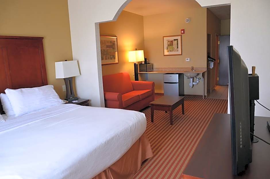 This suite features a separate seating area with a satellite TV, a microwave and a small refrigerator.